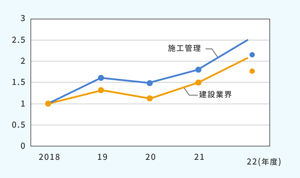 厚生労働省のデータによると、令和5年度の建築施工管理職技術者の有効求人倍率は全国平均で9.09となり、前年度の5.35を大きく上回っているとのことです。これは、求職者に対して求人数が大幅に多いことを示しています。